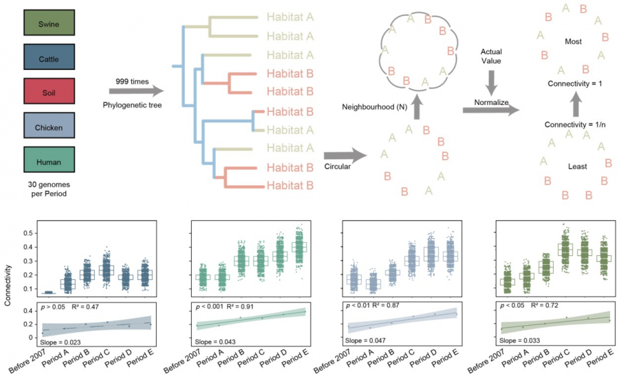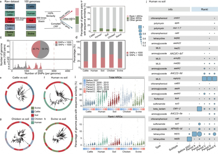 研究團隊分析了近4,000份來自土壤、糞便、污水等不同環境的基因數據集,並檢測了超過8,000株大腸桿菌純菌基因組。結果顯示,2008年至2021年間,土壤ARGs構成的風險持續上升。此趨勢與土壤和人類細菌耐藥性模式變得日益相似,密切相關;而耐藥基因在細菌間的轉移在其中發揮了關鍵的推動作用。